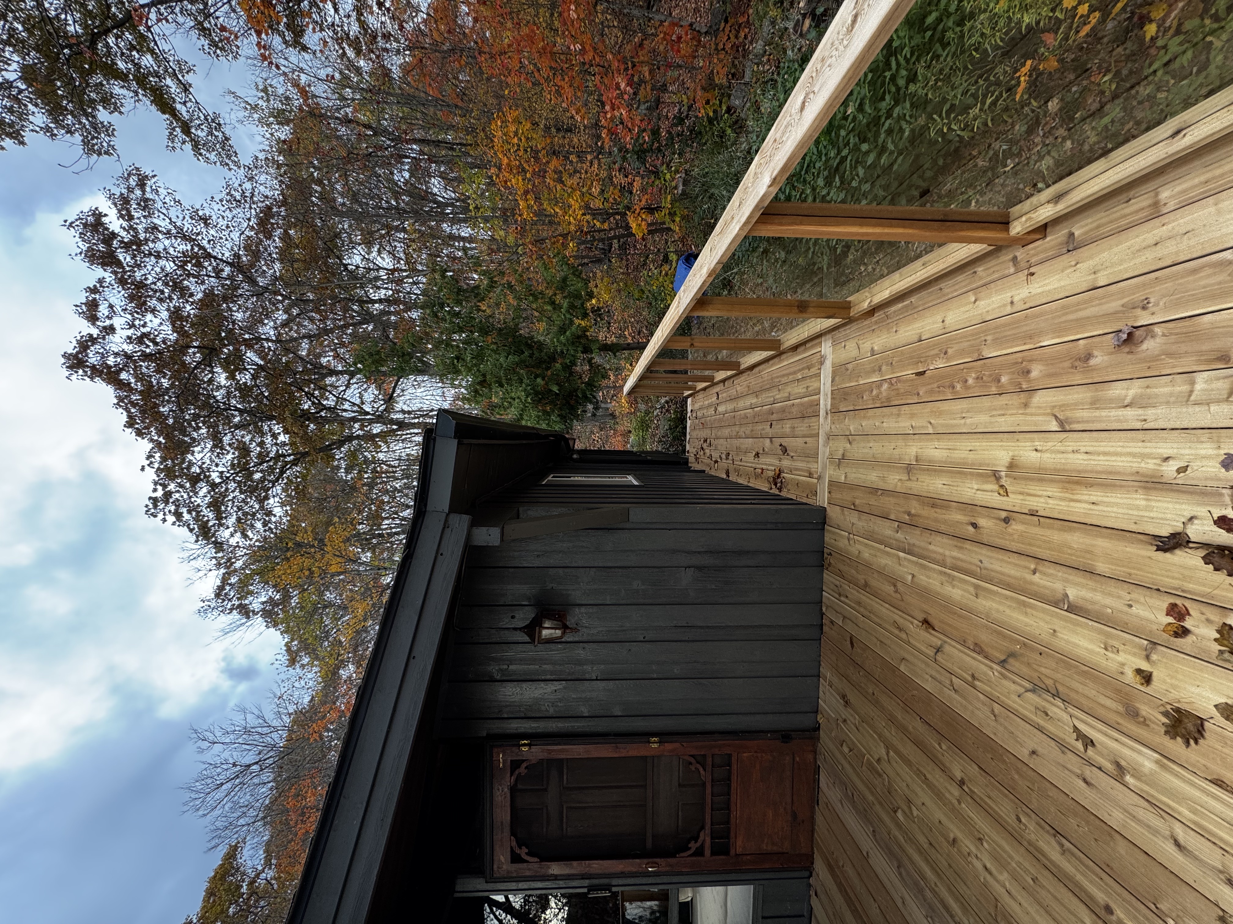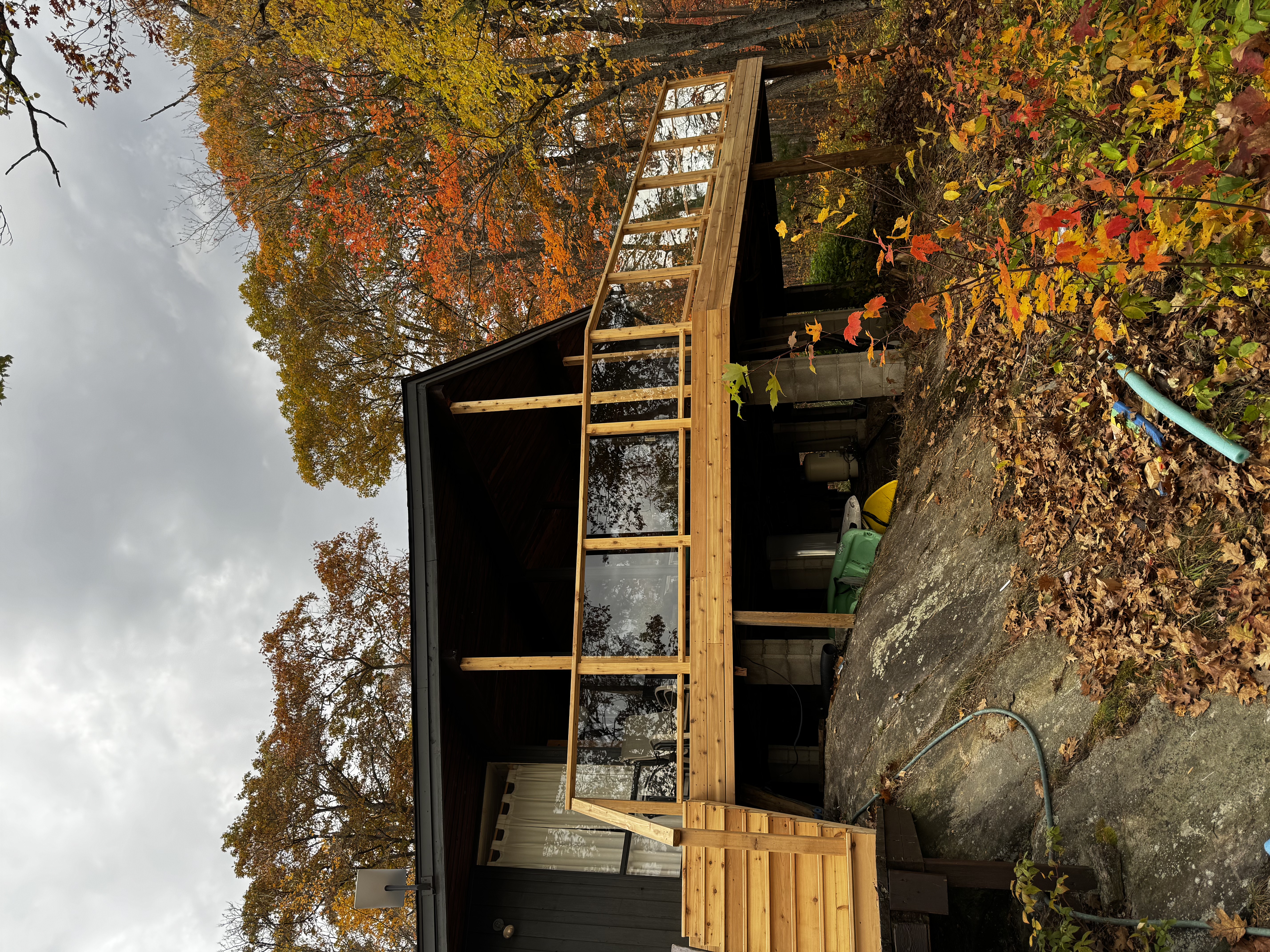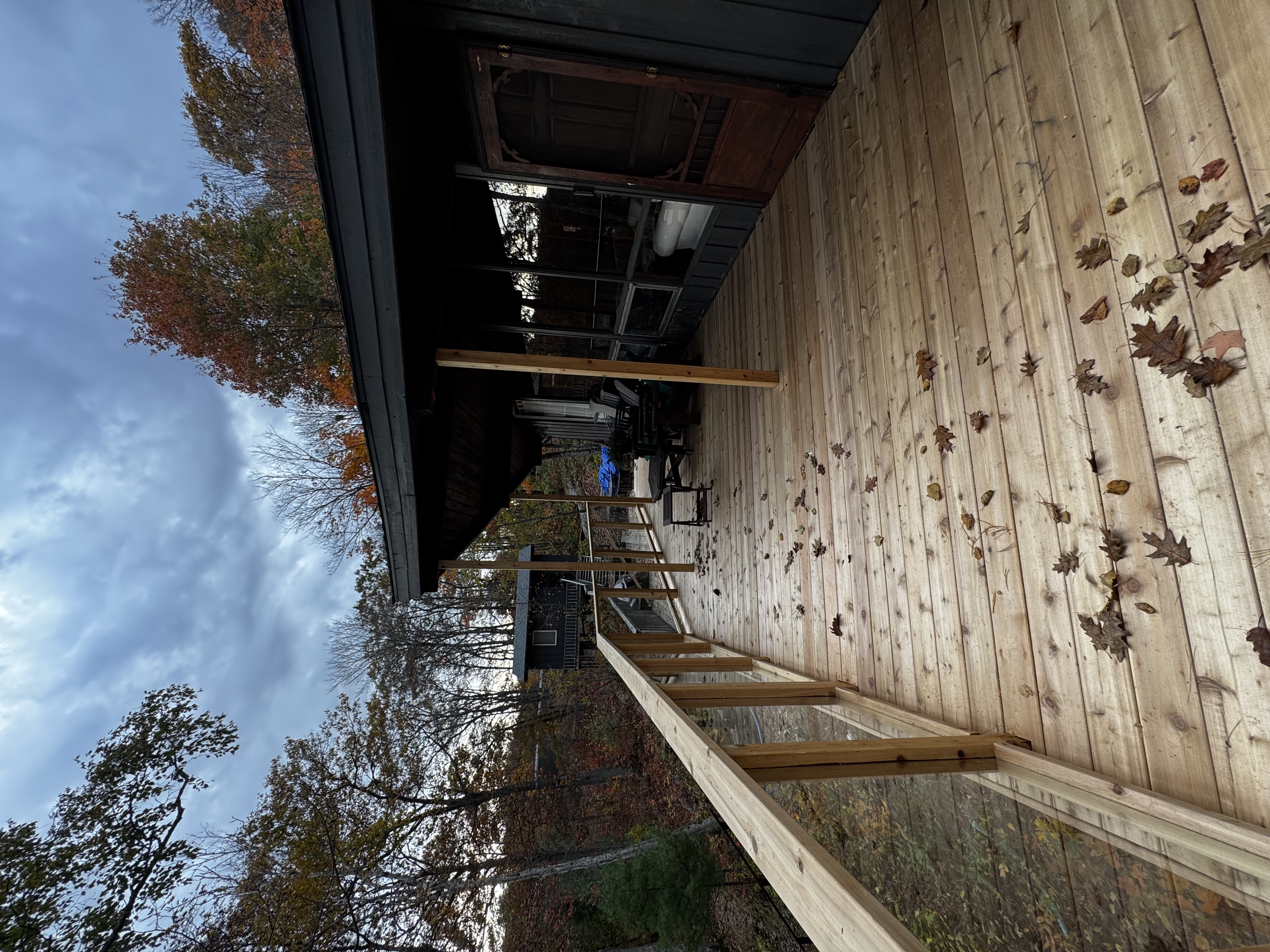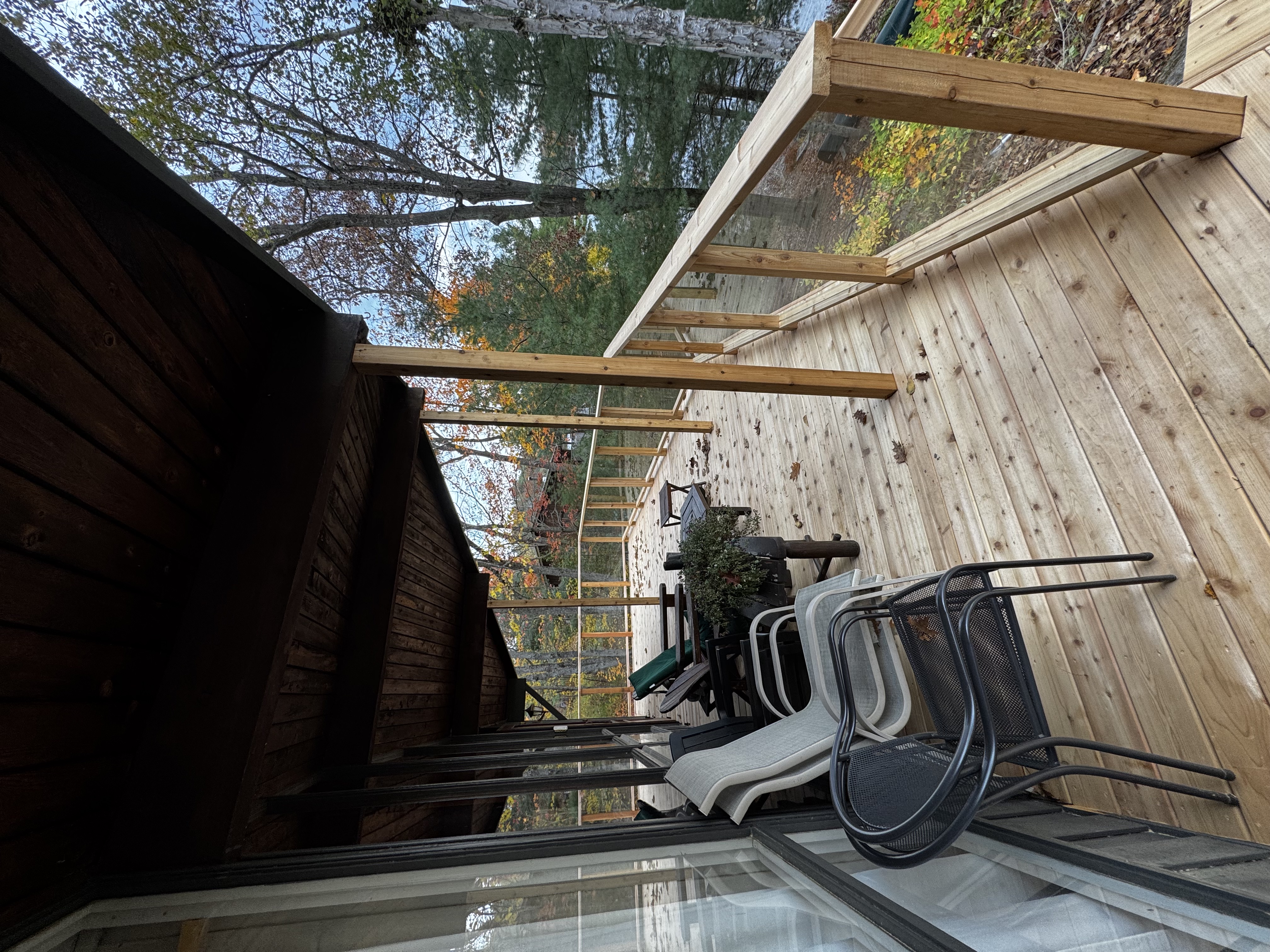Complete teardown and rebuild of a waterfront boathouse deck and dock structure at a cottage on the shores of Seguin Township. The original structure had severely weathered, darkened wood that was structurally compromised after years of exposure to the elements. The project involved full demolition of the old decking and framing, followed by construction of a new cedar deck platform, staircase, and board-and-batten cedar cladding on the boathouse exterior. The finished result is a durable, attractive waterfront space perfectly suited to cottage life in Muskoka.
